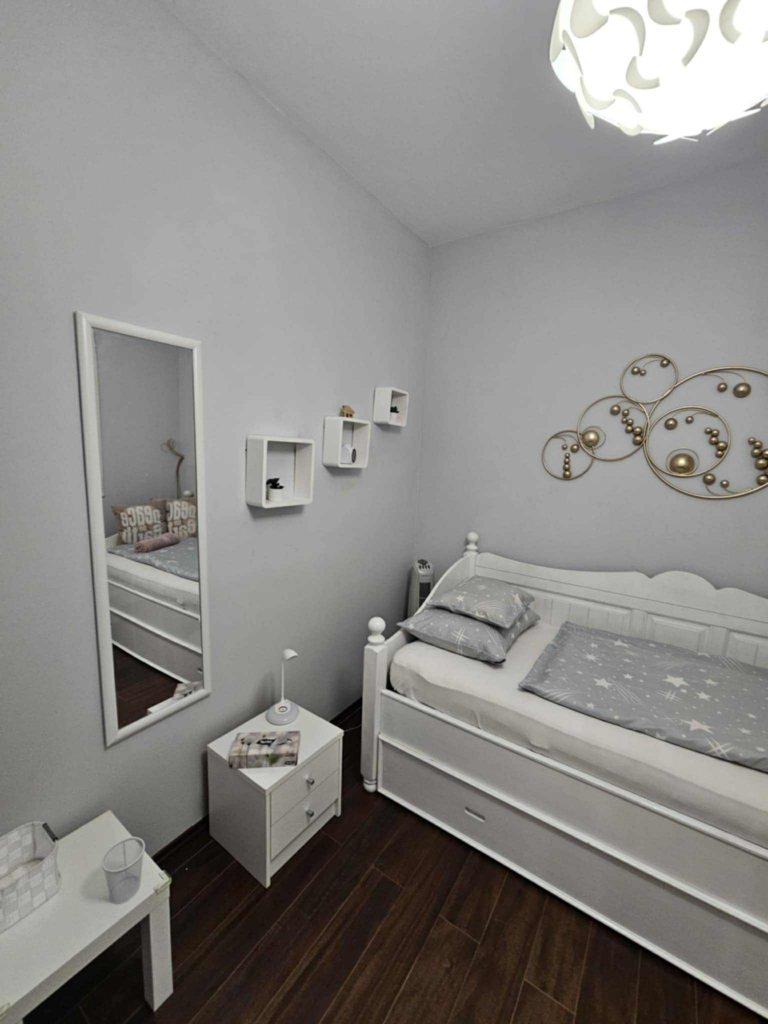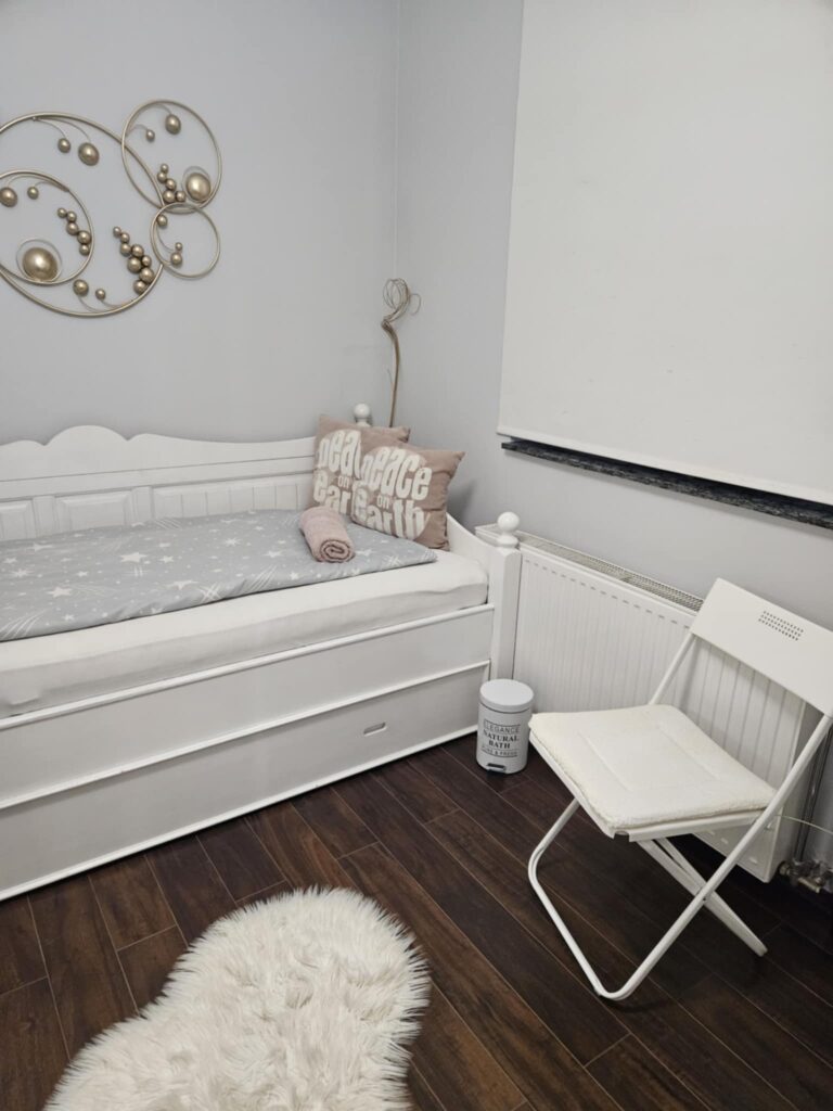 A hálószoba letisztult kialakítása és nyugodt színvilága ideális a teljes kikapcsolódáshoz. Kényelmes ágy, minőségi ágynemű és csendes környezet biztosítja a pihentető alvást. A szoba foglalható 1 személy számára is.